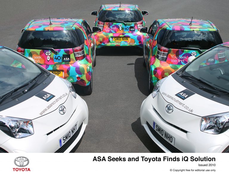 ASA Recruitment may be celebrating its 40th anniversary, but there’s no looking back for the company with its latest acquisition – a fleet of brightly styled and thoroughly contemporary Toyota iQ pool cars, to run around the four Scottish city centres from which it operates.