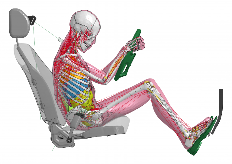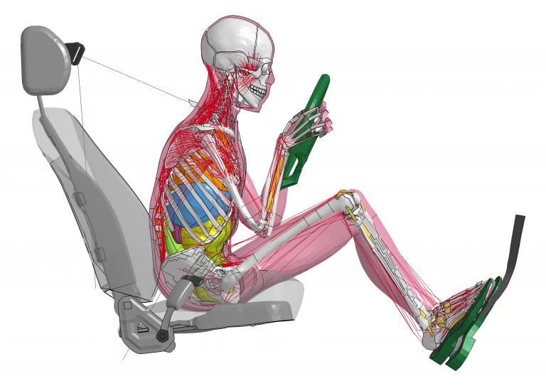 The latest version of THUMS adds a muscle modelling feature that can simulate the body attitude of different vehicle occupants, from relaxed to braced, allowing for more detailed computer analysis of the injures collisions can cause.