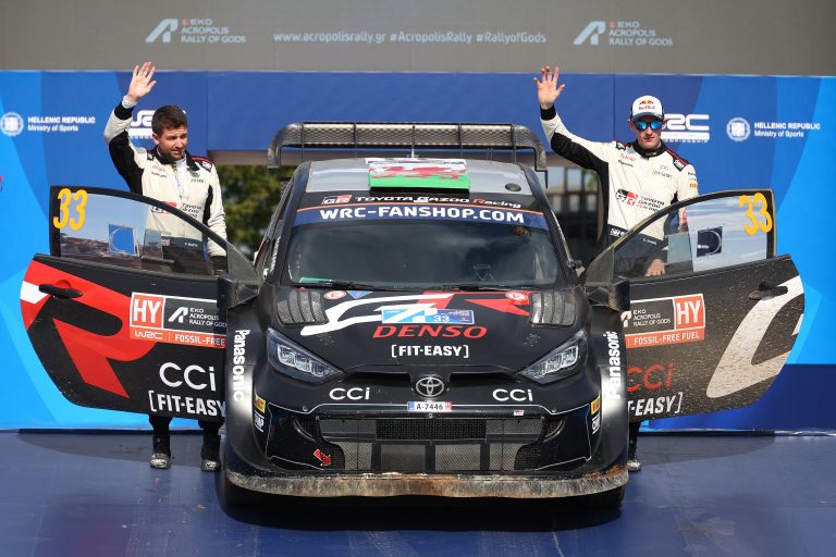 Sustained hot and dry weather made this one of the roughest and toughest editions of the Acropolis Rally for many years. Elfyn Evans lost significant time with multiple issues during the rally but reached the finish taking points for third in the Super Sunday classification and the Power Stage. Takamoto Katsuta, who stopped with damage on Friday morning, took fifth on Super Sunday and in the Power Stage.
