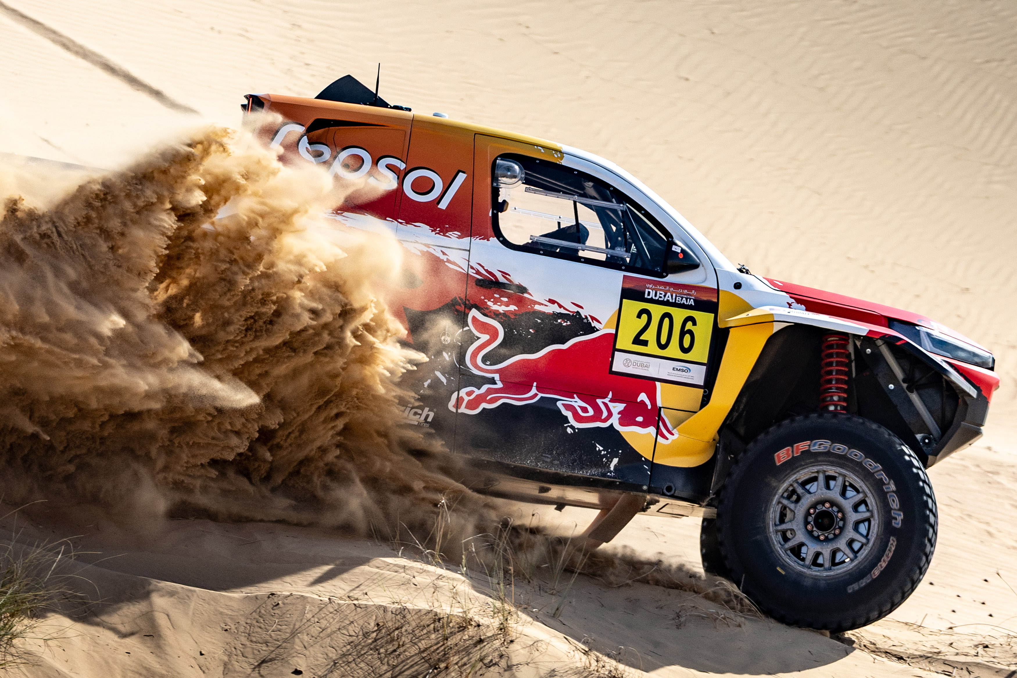 The Dubai International Baja began on Friday afternoon with a short Prologue stage in the Hajar Mountains in Hatta, before a ceremonial start, close to the Dubai Festival City Mall service park. The action proper took place on Saturday and Sunday in the dunes of the Al Qudra desert south of Dubai city.