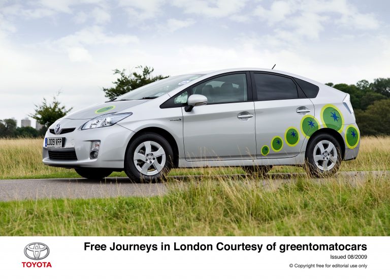 In August 2009, greentomatocars will take delivery of the very first third generation Toyota Prius in London, which boasts improved driving performance and comfort, combined with even lower carbon dioxide emissions. greentomatocars founders Tom Pakenham and Jonny Goldstone have decided to mark the occasion with a nod to the age-old tradition of London cabbies not charging for their first fare after passing “The Knowledge”.