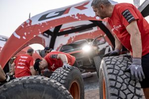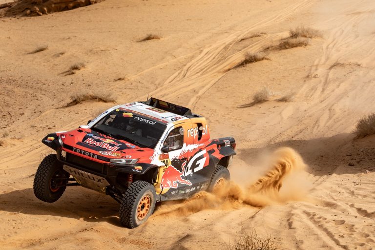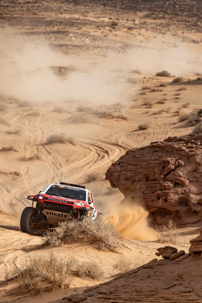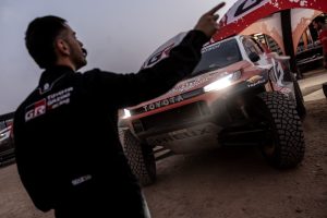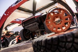 After their dominant performance on Monday’s Stage 2, the three DKR GR Hilux were the first to leave the bivouac for the longest stage of the event so far. They therefore faced a more treacherous surface and additional navigation challenges as the first vehicles to pass through the route.
