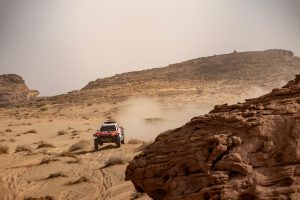 Stage 3 was run almost entirely above 1,000 metres altitude and took competitors east through the canyons of the AlUla region of Saudi Arabia on their way to plateaus. A fast route, which covered more than four hours of driving time, followed through winding canyons before returning westward to AlUla.