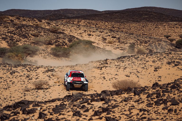 Toyota Gazoo Racing’s Nasser Al-Attiyah and co-driver Mathieu Baumel continue to lead the 2022 Dakar Rally, though the pair lost 7min 1sec to their nearest challengers on the tricky eighth stage of the race. The 245-mile timed section between Al Dawadimi and Wadi Ad Dawasir saw the race leaders start the stage with a worrying noise in the rear differential of their GR DKR Hilux T1+. While a later investigation revealed that the part was in no danger of failing, the crew elected to play it safe by backing off in the opening 125 miles.