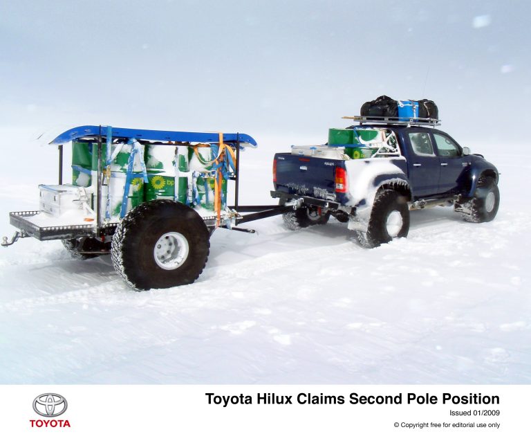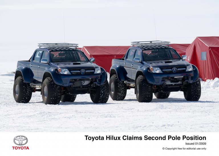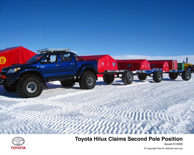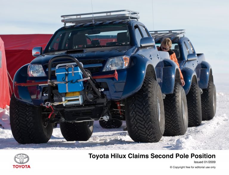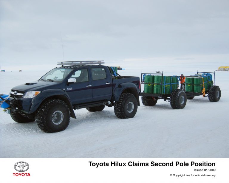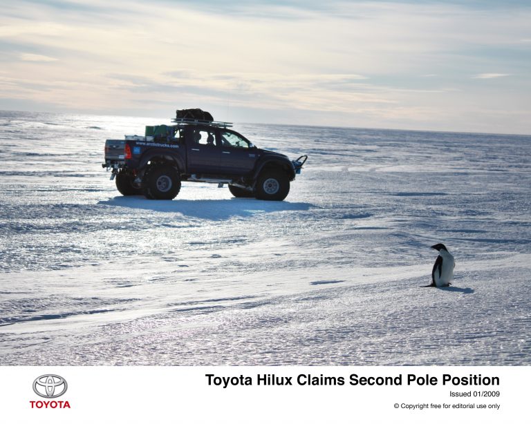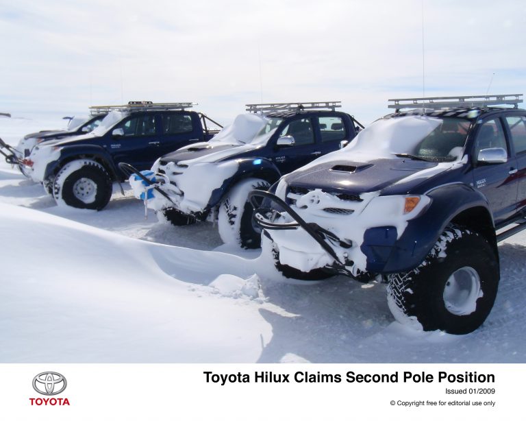 Is there no driving challenge beyond the scope of Toyota’s mighty Hilux? The legendary pick-up has completed a journey across Antarctica to the South Pole, further proving the go-anywhere qualities that helped it become the first car to be driven to the Magnetic North Pole in the 2007 Top Gear Polar Challenge.