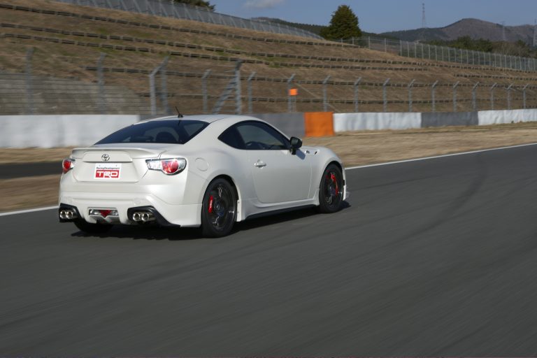 Key handling features added to TRD Performance Line GT 86 include a reworked suspension with new front and rear anti-roll bars, a carbon front strut, rear diffuser, additional cross-bracing and a high-response exhaust system. Finished in Satin White Pearl, the coupe gains a full body kit with skirts and spoilers, 18-inch alloy wheels and sports seats and meters in the cabin. Likewise, the Modellista interpretation of the “hachi-roku” (eight-six) shows some of the customisation possibilities the car offers.
