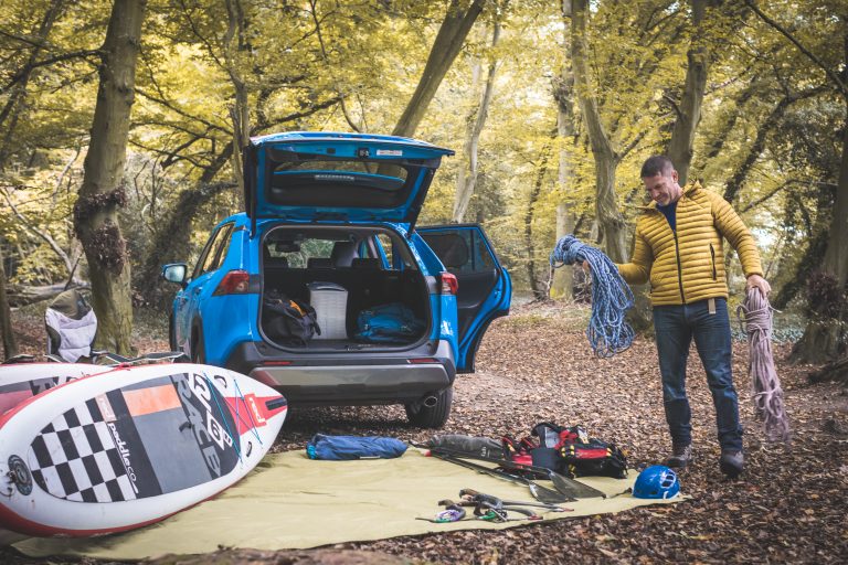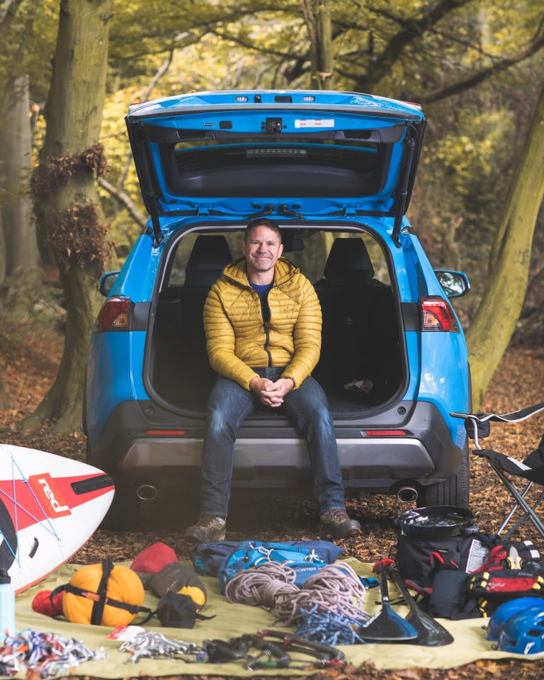 All the equipment described, including the baby gear, fits comfortably into Steve’s RAV4 AWD hybrid. For example, Steve recently went on a ten-day sea kayaking trip to Cornwall and there was enough room to carry all three of the Backshall family together with all their food and camping gear.
