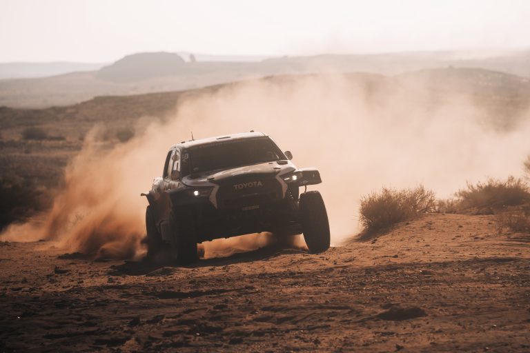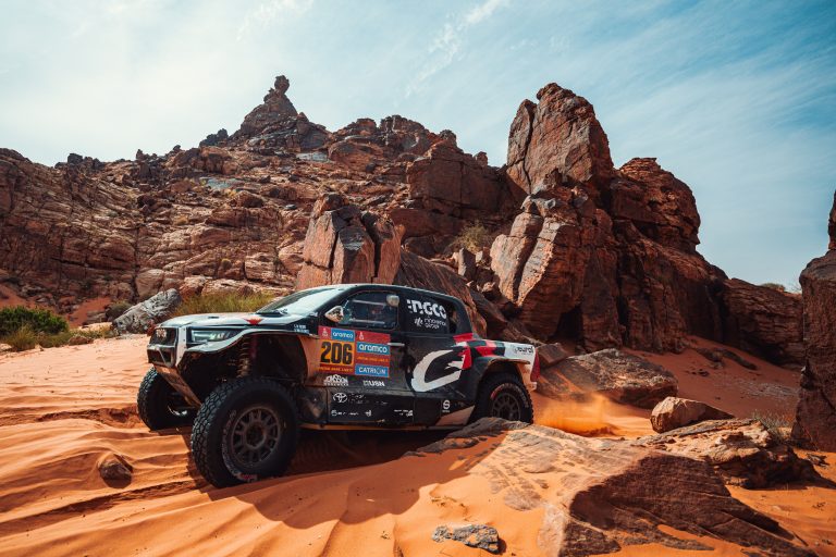 Stage 5 saw the crews return from the Marathon bivouac at Alula, where they had to service their own cars before taking on a 266-mile timed stage taking them back to the main bivouac at Hail. With multiple punctures on Stage 4 and limited resupply at the overnight stop, the course was a tough challenge. However, it was TGR’s Seth Quintero and Dennis Zenz (No204) who set the fastest time of the day. The GR Hilux EVO crew bested the second placed team by a single second and moved into the overall top ten places as a result. They are now 1hr 3min 10sec behind the leaders with seven stages left to run.
