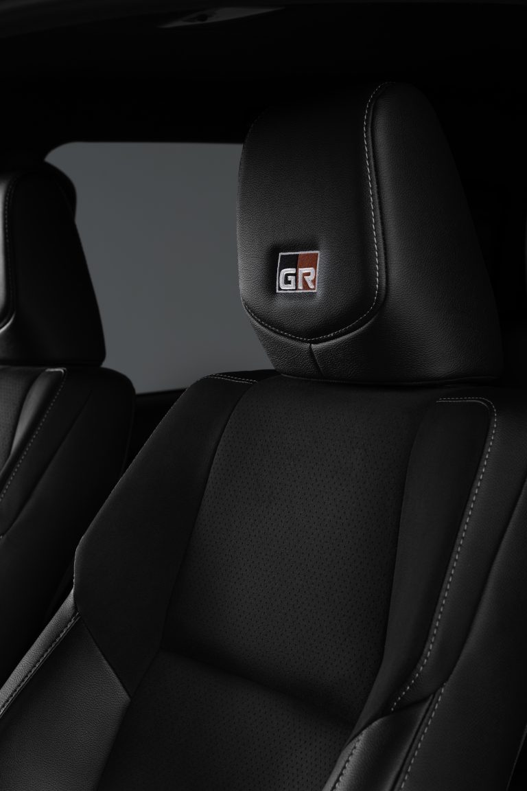 The sports seats are upholstered in a combination of black synthetic suede and leather with silver stitching and perforations. Their design and finish provide comfort and support and good body-gripping performance when experiencing high lateral forces in tougher driving conditions. The GR logo is featured in the information display and instrumentation and there are new-look door trims.