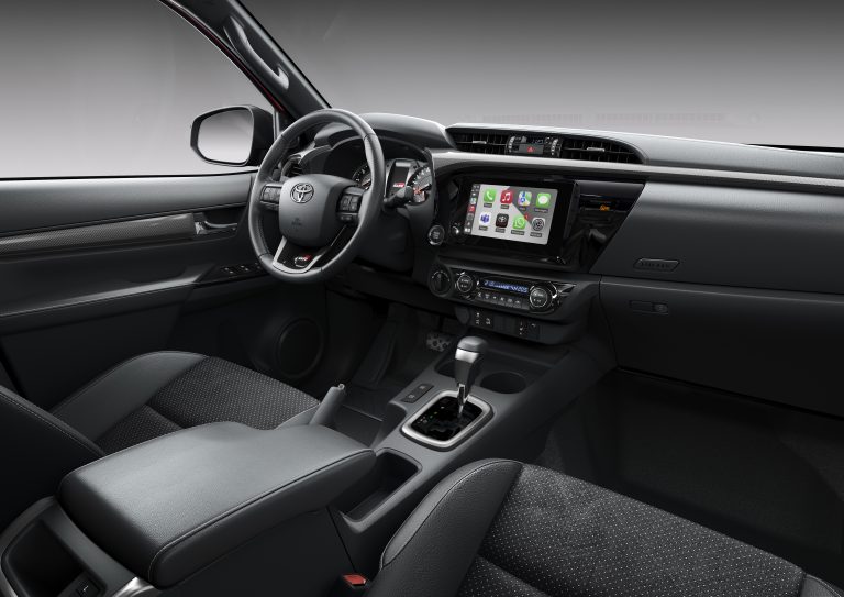 The Hilux GR Sport is fitted with the Toyota Smart Connect+ multimedia system, accessed via an eight-inch touchscreen display.