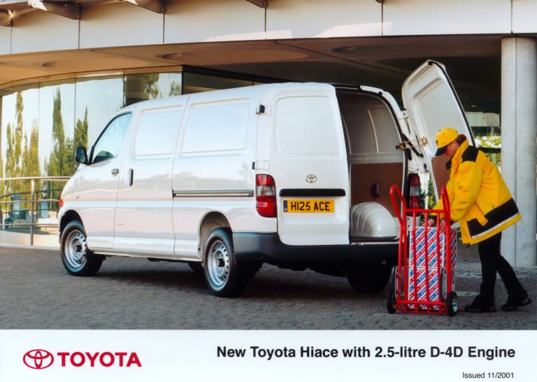 November 2001 brings the launch of an all-new Toyota commercial vehicle range with the introduction of a light truck known as Dyna 300/350. In addition, the Hilux Pick-up and Hiace van get a fresh new look and improved specification. All Toyota commercial vehicles are now fitted with 2.5-litre D-4D direct injection common rail turbo diesel engines for more power and better fuel consumption.