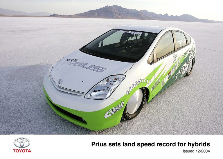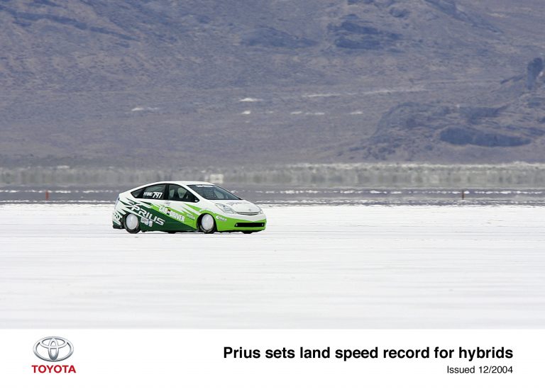 The lean, green Toyota Prius has swapped Sunset Boulevard and the Hollywood Hills for the Bonneville Salt Flats in Utah to set a new world land speed record for hybrid powered cars. The record setting car will be displayed at the Detroit Motor Show in early January 2005.