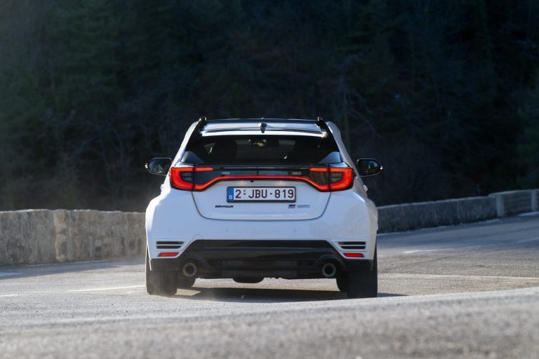 A large cooling duct and grille on the aluminium bonnet mirror the contoured shape of the previous GRMN Yaris’s carbon-fibre bonnet and improve cooling during high-speed driving. The design was developed and proven in the Japanese Rally Championship.