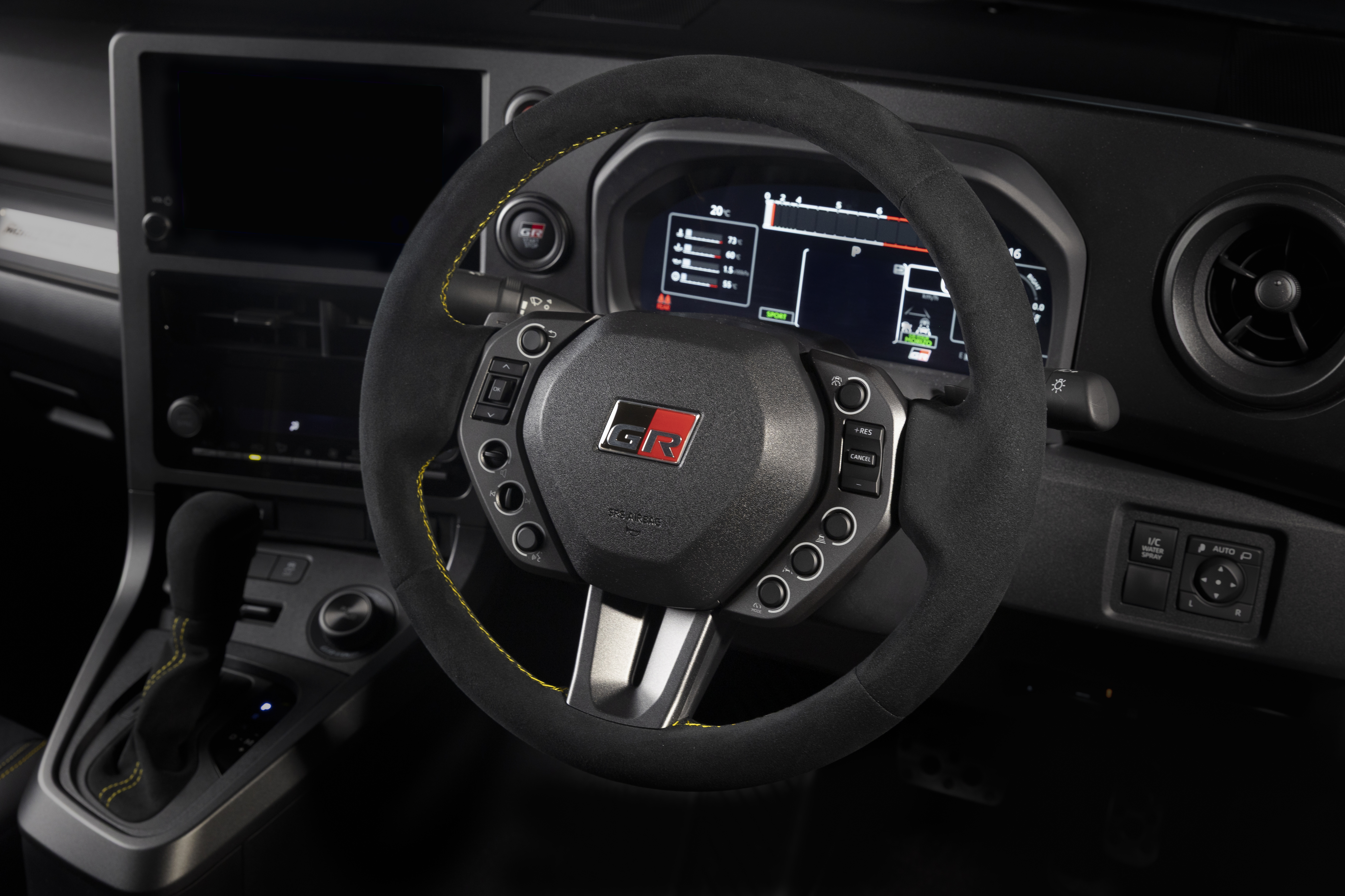 The limited edition is equipped with Gazoo Racing Direct Automatic Transmission (DAT) and an exclusive rear wing and features an optimised suspension set-up. The electric power steering system has been tuned and the exclusive 4WD MORIZO control mode added. Exterior details include a front spoiler, side skirts, and a carbon-fibre bonnet. The distinctive appearance is enhanced by the exclusive Gravel Khaki colour, Piano Black radiator grille, Matt Bronze wheels and yellow brake callipers.