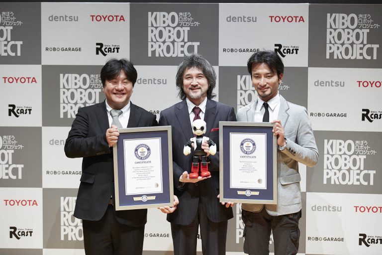 Erika Ogawa, Guinness World Records’ Japan Vice President, then presented Kirobo with two certificates. The citations read: “The first companion robot in space is Kirobo (Japan), which arrived at the International Space Station on 9 August 2013” and “The highest altitude for a robot to have a conversation is 414.2 km above mean sea level and was achieved by Kirobo (Japan) on the International Space Station on 7 December 2013.”