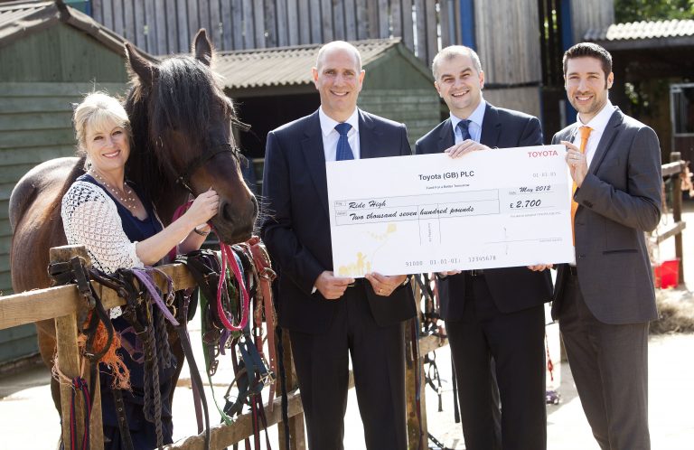 Children, teachers and volunteers at Ride High in Milton Keynes have a reason to celebrate this weekend after Steven Eagell Toyota (Bedford) presented them with a cheque for £2,700 from Toyota (GB)’s ‘Fund for a Better Tomorrow’.