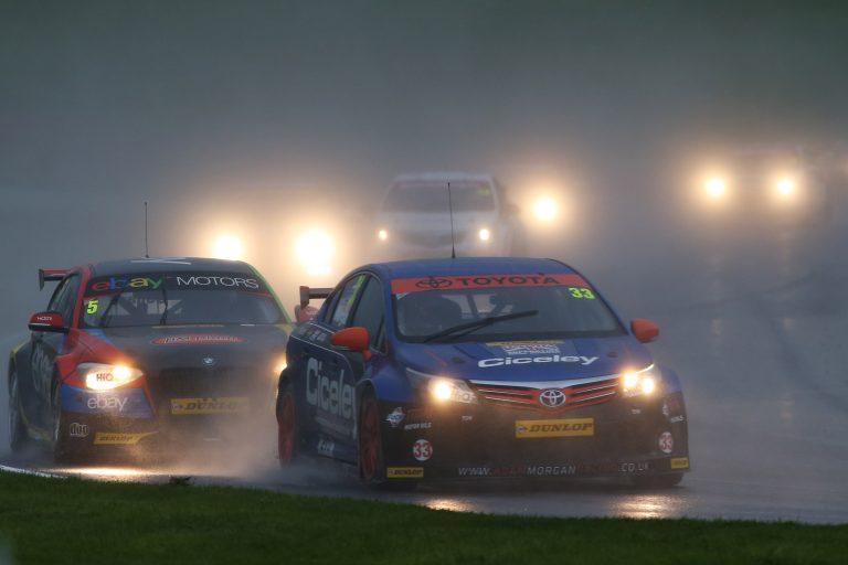 There were smiles also for Dynojet Racing’s Frank Wrathall who, though not destined to repeat his famous Brands Hatch victory of October 2012, did at least end his season with a top-10 finish. Frank’s Avensis again qualified well – he has been inside the qualifying top eight seven times out of 10 this season – but an opening lap knock from a pursuing car damaged a rear wheel and ended his first race on the opening lap.