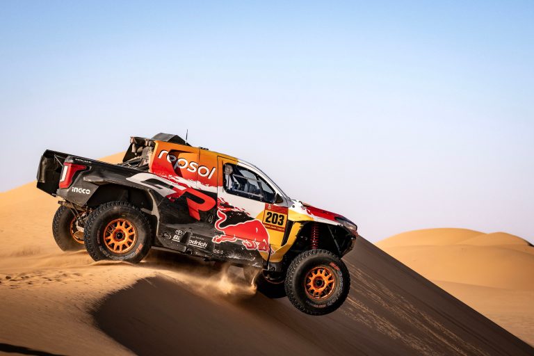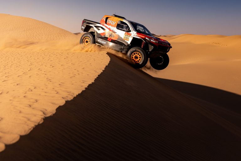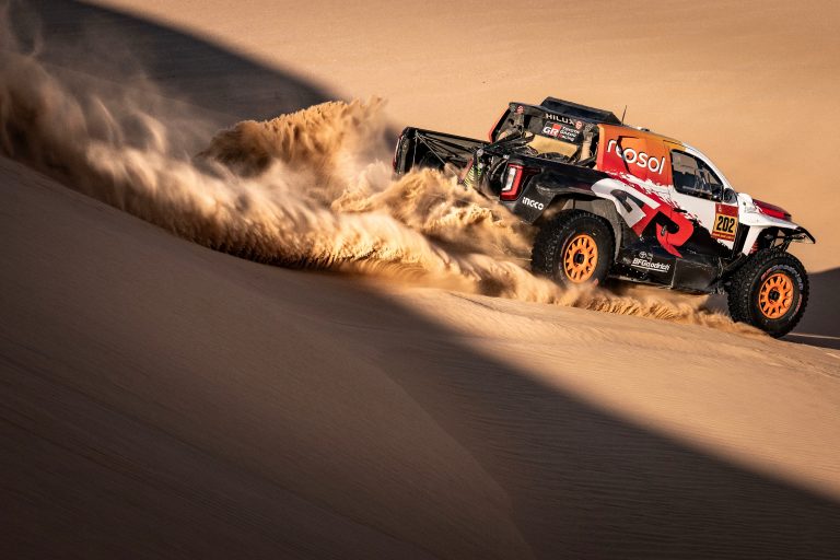 Those misfortunes left the No202 DKR GR Hilux more than 25 minutes off the pace, but Lategan and Cummings fought back. Their resilience – driving at high speed and wearing goggles against the sand – limited the damage. Despite finishing 16th, Lategan and Cummings remain only six minutes behind the overall leaders, in fourth, with four stages and more than 680 miles of competition remaining.
