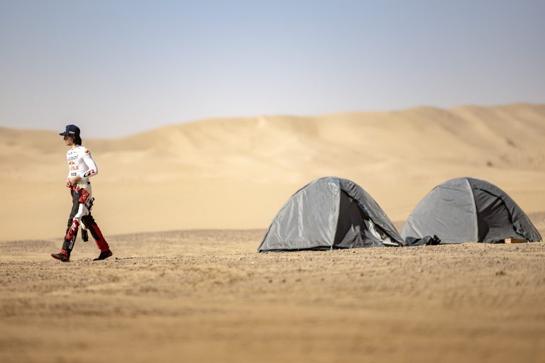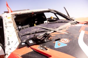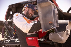 Henk Lategan: “It was not a great day, and it’s a long story. We were going quite well in the beginning, even though we were opening the stage. Then we got a puncture before we completely lost the power steering. That was 40km before the pit stop zone, so we stopped there and the team did an amazing job to replace everything so quickly. We carried on and had another puncture. But we resumed in the dust of another competitor and hit a branch, which we just couldn’t see. We had to stop to kick the windscreen out and then run the rest of the day with goggles. It was frustrating but we’ll try to have a cleaner day tomorrow.”
