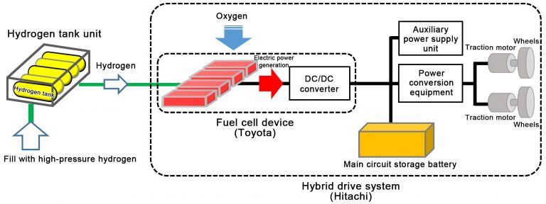 Toyota will develop the fuel cell device and Hitachi the hybrid drive system in the test train. It will have the nickname HYBARI (HYdrogen-HYBrid Advanced Rail vehicle for Innovation).