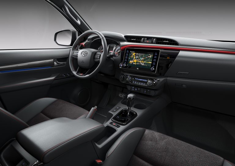 The GR Sport is powered by Hilux’s more powerful 2.8-litre engine, introduced to the range in 2020. This delivers 201hp/150 kW and 500Nm of torque and is matched to a six-speed automatic transmission.