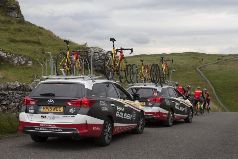 Toyota has been building cars in Derbyshire for over 20 years and is pleased to be supporting some of the region’s finest exponents of two-wheeled transport by providing a fleet of vehicles to the Raleigh-GAC pro-cycling team.