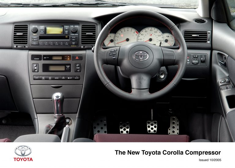 To cope with the power hike, the Corolla Compressor is fettled with 15mm lowered sports suspension and uprated springs for extra handling performance. It looks the part, too, riding on 17-inch alloy wheels with 215/45 tyres and dressed with a roof spoiler, deep rear air dam and sports exhaust with twin tailpipes.