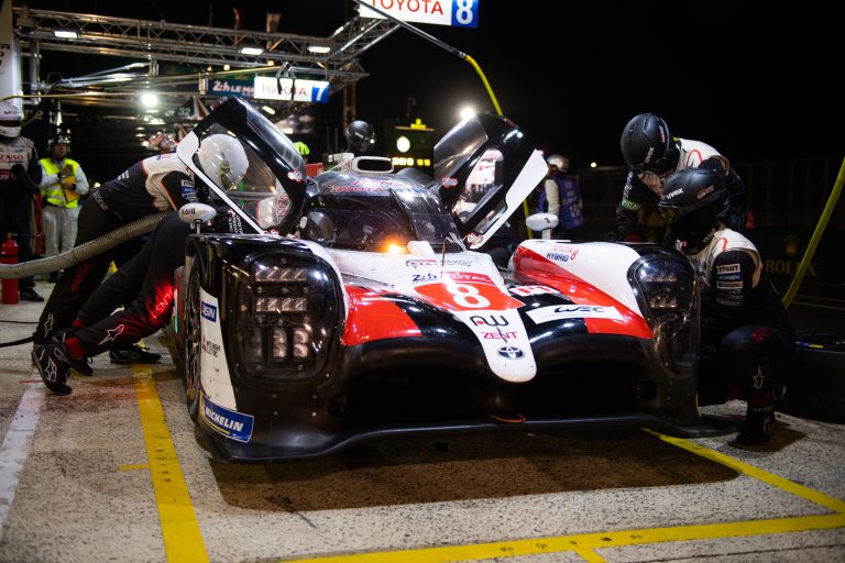Kobayashi had put the No7 Toyota on pole position with the fastest qualifying lap, just ahead of the No8 car. That set the scene for an exciting and close battle between the two 1,000hp machines as the race progressed. After 12 hours the gap was still less than nine seconds, but during the night the No7 extended its advantage as its sister car encountered aerodynamic issues from bodywork damage. During the final hours the gap remained stable at around two minutes and the focus switched to bringing both cars home safely. All appeared to be going to plan until the final drama played out with less than an hour to run.