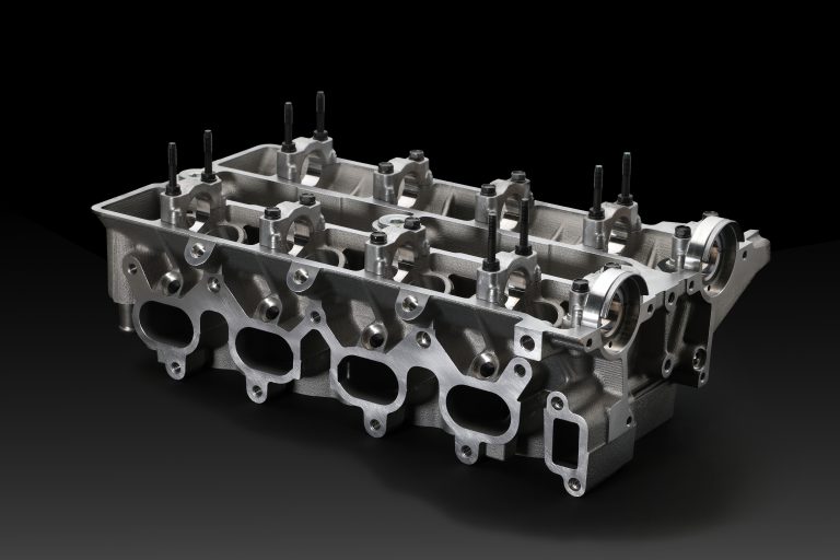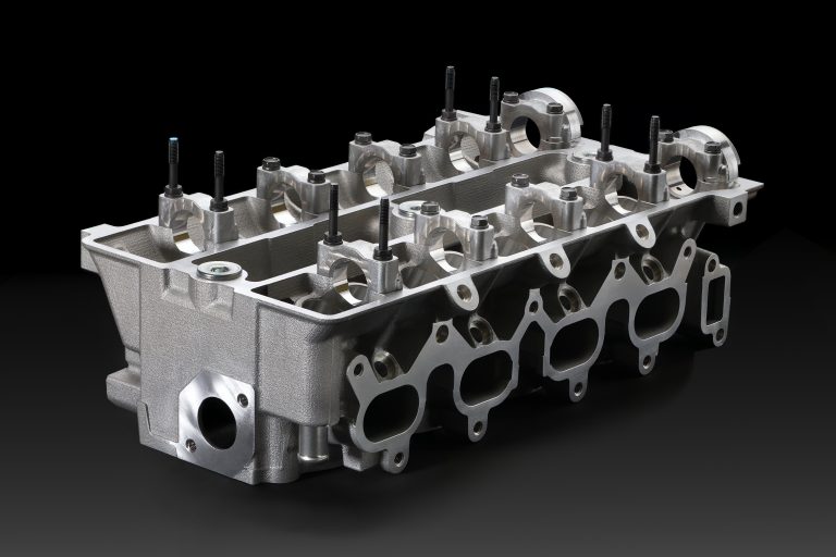 The cylinder head sub-assembly features combustion chambers with additional machining that lessens the untouched cast surface area, reducing the differences between individual engines that can arise from slight variances in compression ratio. The intake ports undergo a new coating process to reduce pre-polishing surface irregularities, while camshaft cap knock pins, which were originally only in part of the assembly, have been added throughout for improved workability.