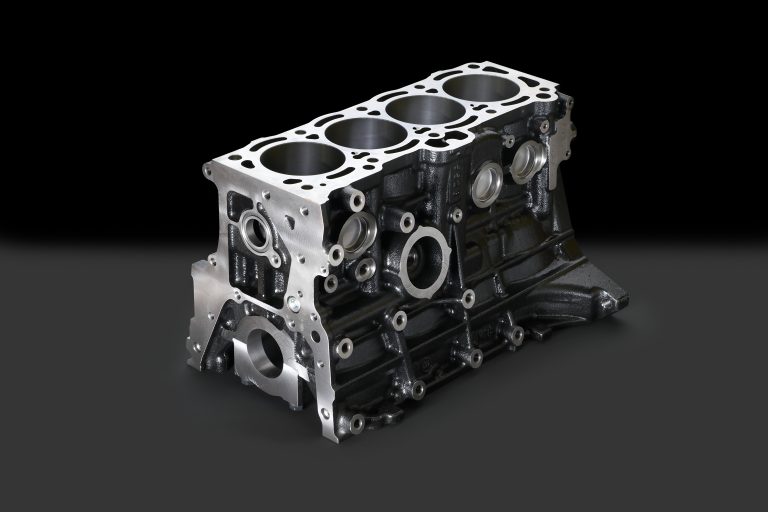 The cylinder block sub-assembly’s cylinder bores benefit from a modern honing process with more precise machining. Durability has been improved by using higher-rigidity cast iron and simulation-based modification of the crank-cap structure.