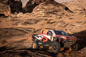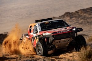 The crews began Stage 5, the second part of the marathon, after spending Wednesday night in tents alongside their vehicles. The 231-mile competitive section en route to the city of Ha’il initially ran on fast sandy tracks before rockier sections. It was especially demanding in terms of navigation, with difficult-to-see tracks increasing the risk of missing a waypoint.