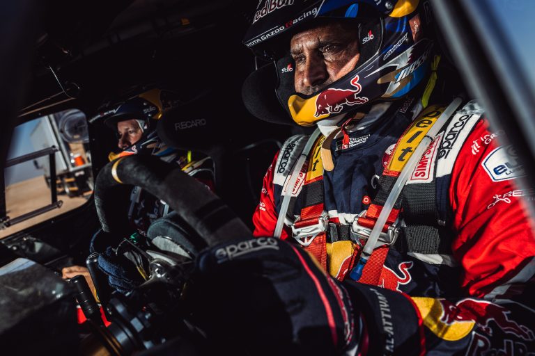 “It was a long stage, and the first part was really fast, with some difficult sections that could catch you out. The second part brought some nice dune crossings, and the last part was quite fast again, with riverbeds and some rocks. We had a fairly good stage, though we had a puncture after the restart in the middle of the stage. We were stuck in the dust of (Mattias) Ekstrom, and hit a rock that we couldn’t see, so we had to stop and change the wheel. This put us back a bit, and Nasser caught up with us. I decided to let him past and we just followed him to the finish.”