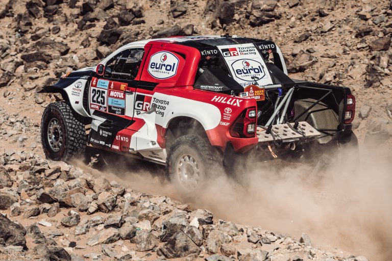 Toyota Gazoo Racing’s Nasser Al-Attiyah and co-driver Mathieu Baumel recorded their second stage victory of the 2022 Dakar Rally when they triumphed on Stage 4, between Al Qaisumah and Riyadh. The Toyota Hilux crew had a clean run and managed to extend their overall lead in the rally to 38min 05sec. This came after teammates Henk Lategan and co-driver Brett Cummings set the pace during the first half of the stage, only to see what seemed like a certain win slip away.