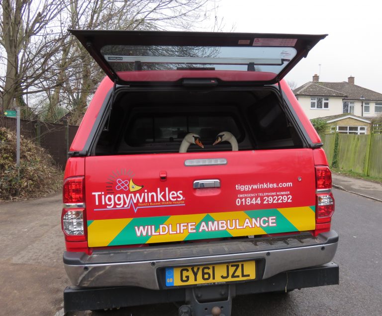 Tiggywinkles spokesman Nikki Babb explained: “Swans seem to be especially comfortable in the bed of the Hilux, as they have plenty of head room for those long necks. The feisty heron and aggressive grebe are more nervous than the swans so they were kept in the dark to the back of the truck bed where they would feel more secure”.