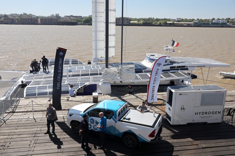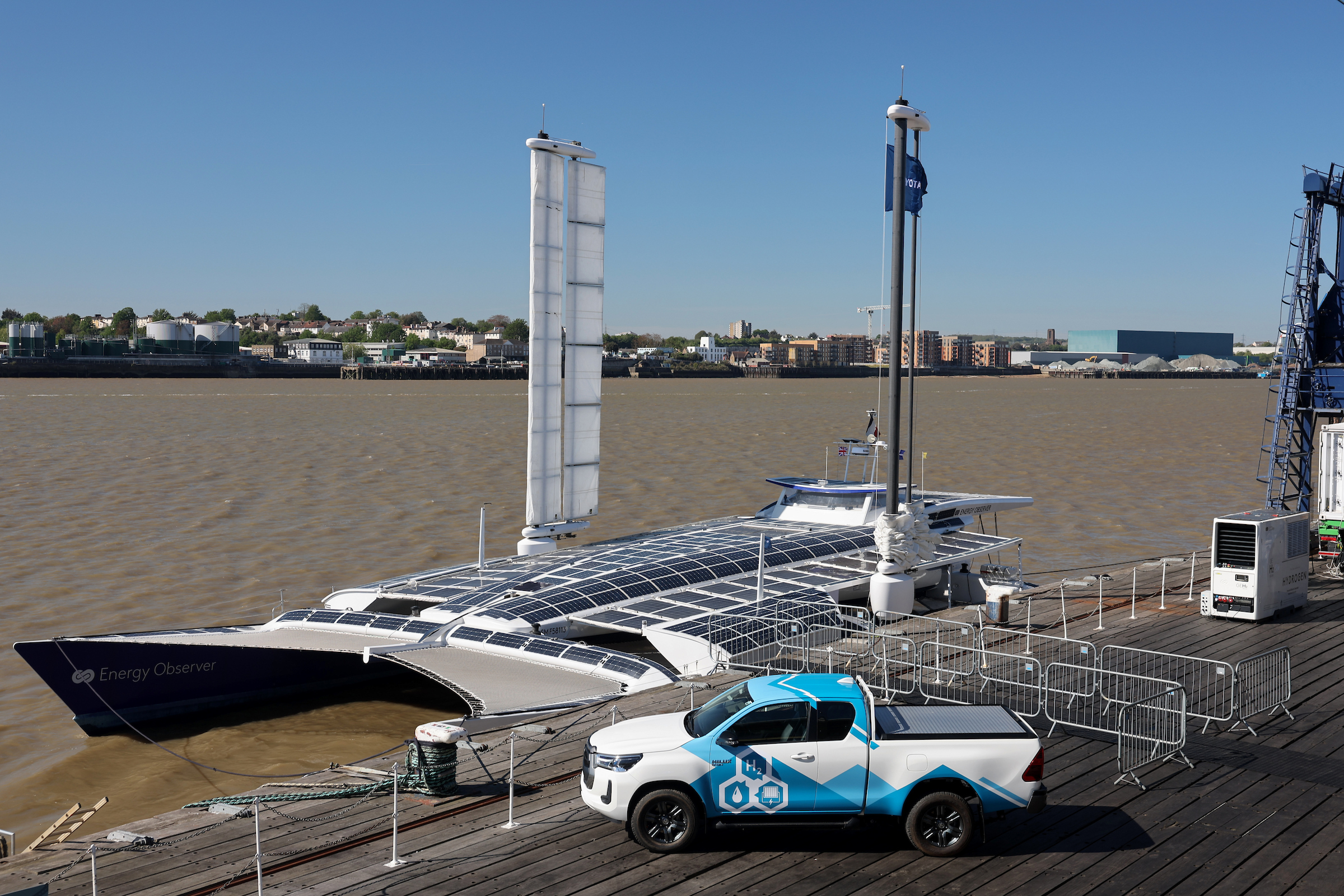 Luigi Ksawery Luca’, Toyota (GB) President and Managing Director, said: “Our participation in today’s events with Energy Observer mooring at the Port of Tilbury and the presentation of our prototype fuel cell Hilux is a perfect illustration of how we are developing hydrogen technologies on our key pillars of fuel cell vehicles, working with business and the creation of hydrogen ecosystems. We believe hydrogen can be a major contributor to a future carbon-neutral society and we continue to forge relationships with partner businesses, focusing on diverse forms of transport and power generation.”