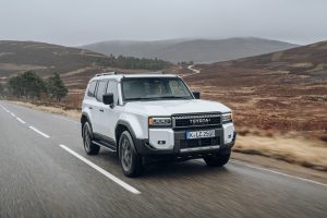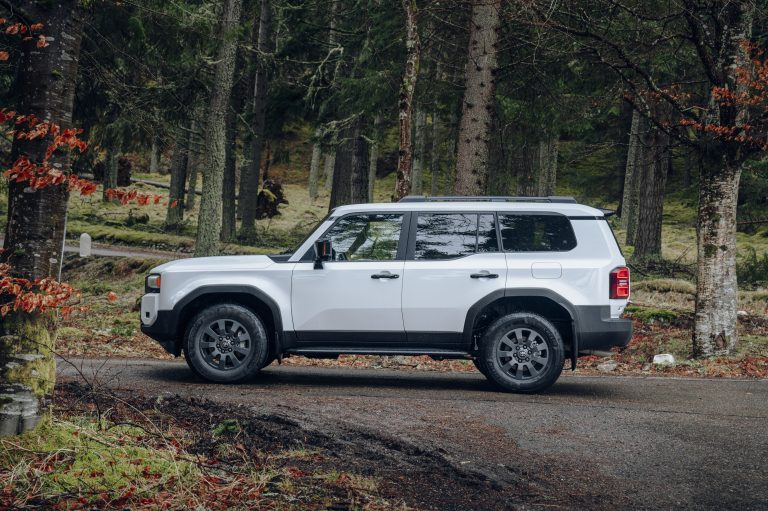 In the UK, the new Land Cruiser is available in a single equipment grade – Invincible. Key standard features include 20-inch alloy wheels, roof rails and an opening panoramic roof. Inside, the cabin has leather upholstery and is equipped with a 12.3-inch multimedia touchscreen, head-up display and 14-speaker JBL premium audio system.