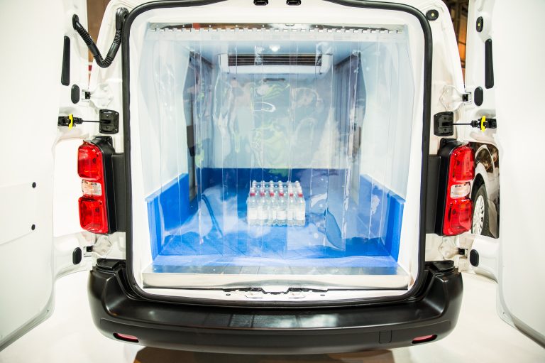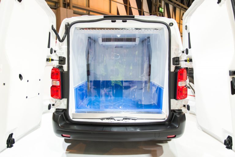 The Toyota Proace refrigerated van featured on the show stand is based on a medium wheelbase model in Base trim with conversion work by Coolkit. The installation of the refrigeration system creates a loadspace measuring (internally) 2,135mm long, 1,128mm wide and 1,347mm high. The vehicle payload is expected to be 941kg. The conversion proposes a Hubbard (Zanotti) SFZ009 temperature control system with an under-chassis condenser and off-cycle defrosting. It is designed to carry packaged goods at temperatures from chill to +0º Celsius. The design can be adapted to provide loading doors to the rear or either side. Other features available include LED loadspace lighting, strip curtains, drain hole and an anti-slip floor. The retail price* is £5,995 plus VAT.