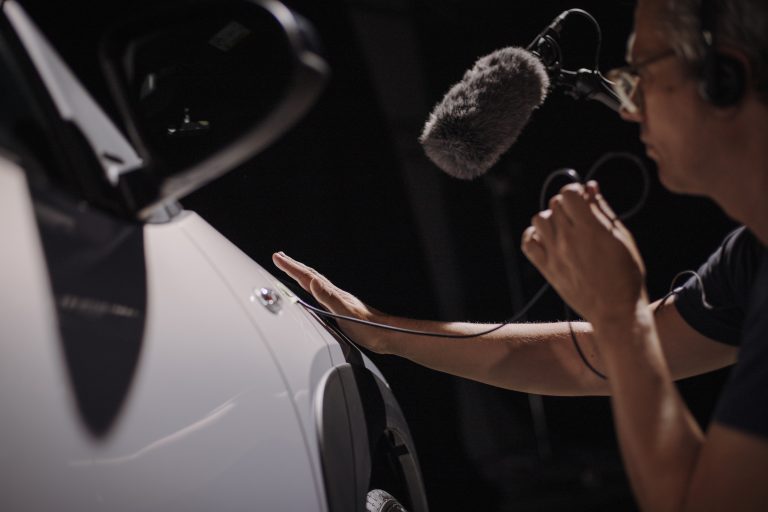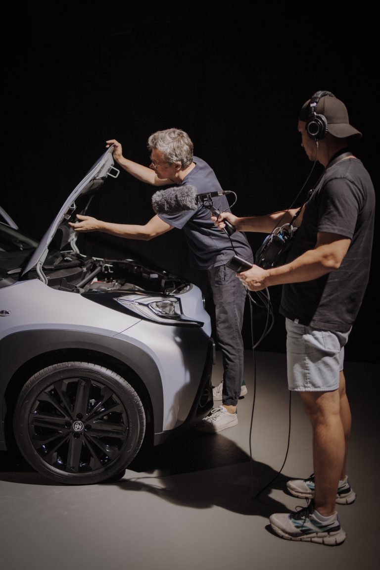 The ASMR Textures track promotes deeper relaxation. ASMR – autonomous sensory meridian response (ASMR) – is the physical sensation created by sounds, often simply everyday noises. The concept has grown in popularity as a means of unwinding, with tracks streamed by millions of listeners. For The Sound of Noise, a seven-minute track has been composed using sounds recorded inside and outside the Aygo X JBL. Ultra-sensitive microphones captured the sound of touch actions on different materials in a studio recording session. The sounds were then arranged and processed using effects such as reverb, delay and panning to create an aural experience to stir the emotions.
