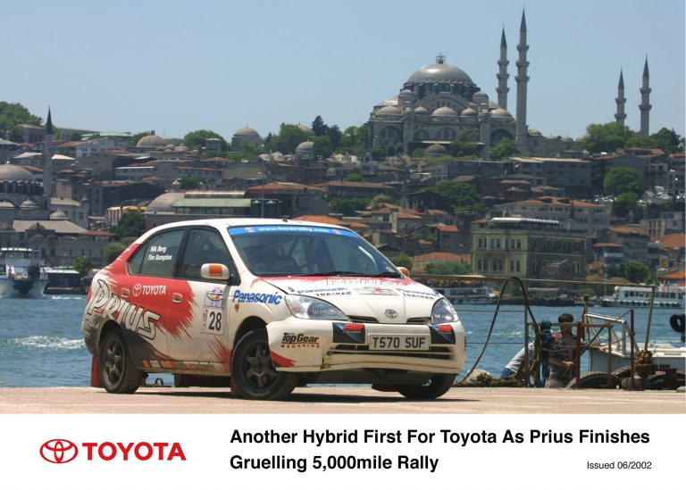 The world’s first hybrid rally, a Toyota Prius, has finished the gruelling 5,000 mile, three-week Midnight Sun to Red Sea Rally in a provisional 14th place overall. This secures the Prius’ place in motoring and motorsport history as the first hybrid car to enter and finish an official, FIA sanctioned event.