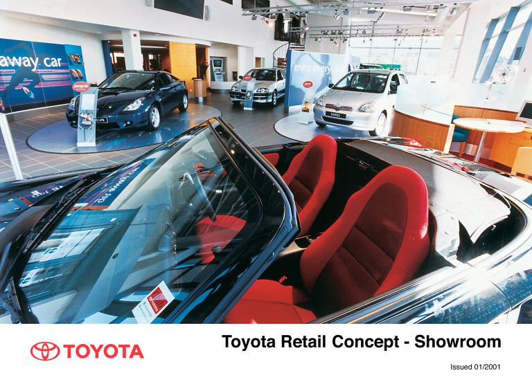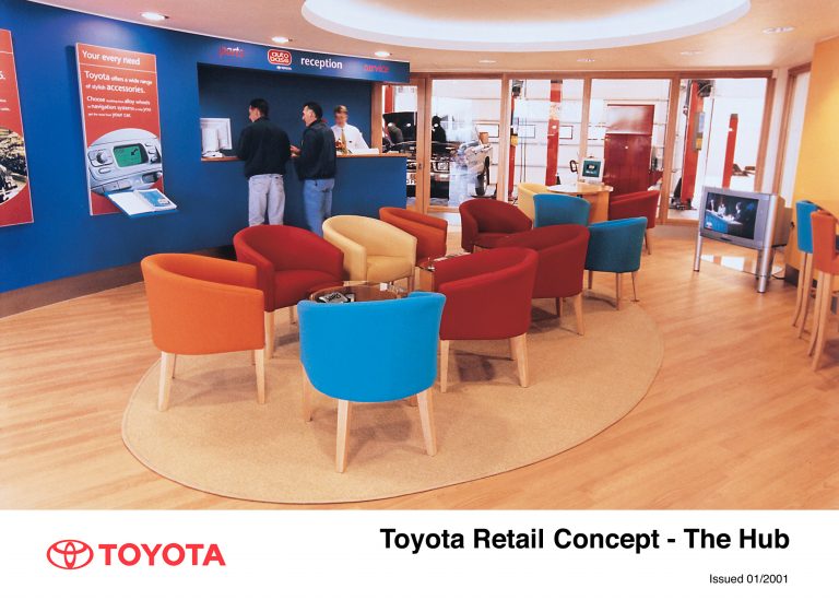 Toyota (GB) PLC, in conjunction with Designhouse Consultants, developed a new retail concept for its dealerships with an emphasis on browsing, with clear signage and easy access to vehicles.