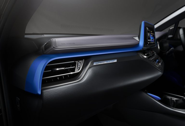 The Limited Edition adopts all the high-quality design and specification features of the Toyota C-HR Dynamic. This includes LED headlights, fog lamps and daytime running lights, sequential LED turn indicators and rear privacy glass. Auto-folding door mirrors, front and rear parking sensors and Smart Entry and Start ensure maximum convenience, while a focus on contemporary style in the cabin adds an anodised blue decoration line framing the full width of the dashboard, dark violet trims for the upper instrument panel and door panels and light blue ambient door illumination.