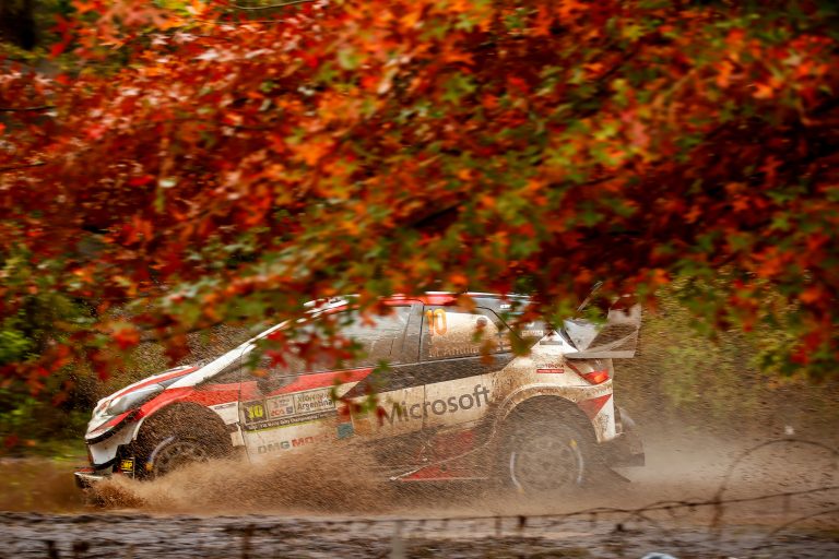 On Saturday Tänak claimed two further stage wins in the morning, taking the Yaris WRC’s tally to 200 since the car made its debut in 2017. His challenge faded with a loss of battery power late in the day and overnight he and Meeke were both handed 10-second time penalties for a minor route infringement. Meeke had his sights set on podium finish, winning the first stage of day four and then moving into third place. At the close he missed out on a top-three result by just 1.4 seconds.