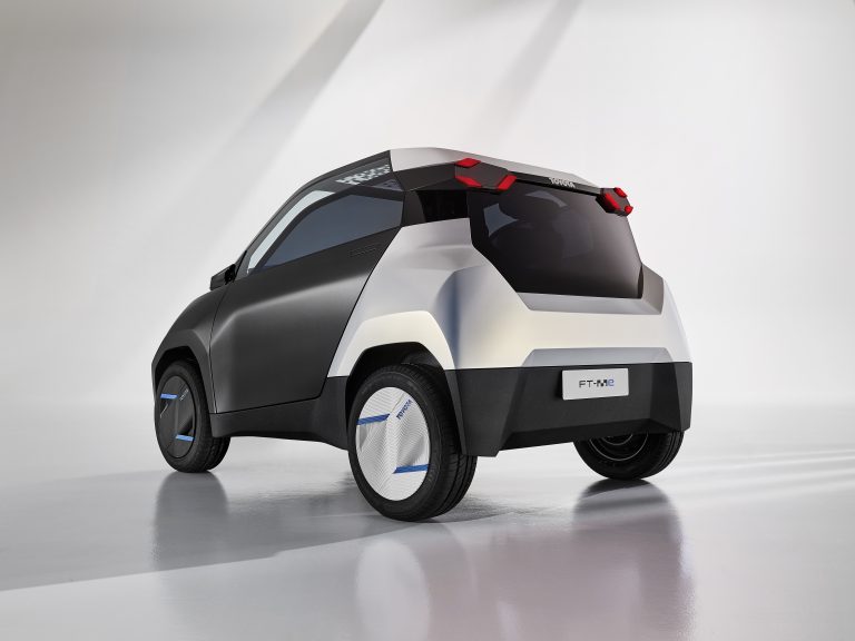 The FT-Me is a compact yet spacious two-seat vehicle, measuring less than 2.5m in length. Its design emphasises manoeuvrability and it occupies only half a standard parking space – or just one third where perpendicular parking is permitted. Its styling, inspired by a jet helmet is a bitone black and white combination that conveys a sense of safety, robustness, light weight and a go-anywhere attitude.