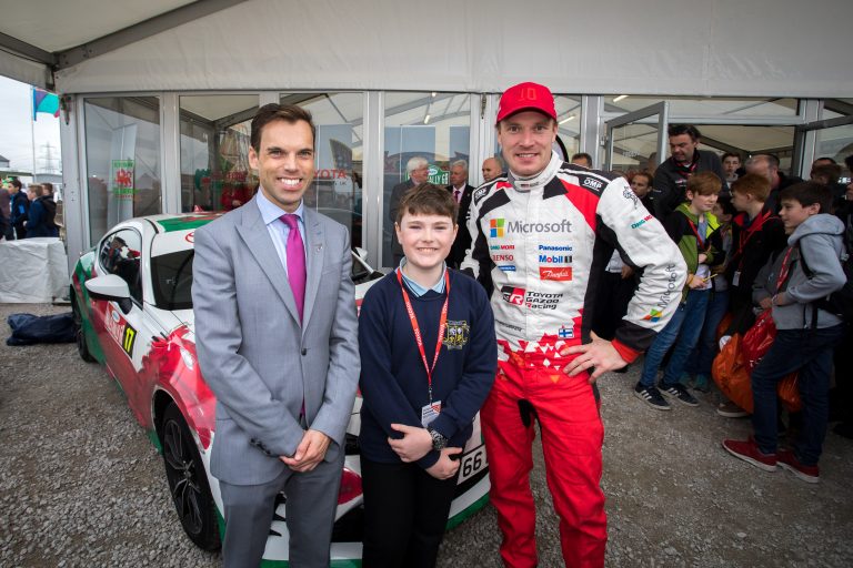 Toyota GAZOO Racing WRC star Jari-Matti Latvala and Welsh Government Cabinet Secretary for Economy & Infrastructure, Ken Skates, proudly pulled the covers off a Toyota GT86 sports car bearing the prize-winning livery designed by 12 year old Rheinallt Jones at Deeside Rally Village on 26 October, ahead of this weekend’s all-action Dayinsure Wales Rally GB.